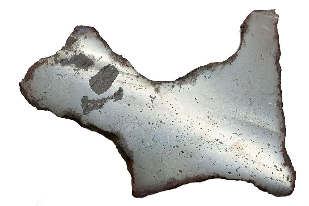 Deze meteoriet (hier een segment van 41,4 cm lang) bestaat uit een legering van ijzer en nikkel, met insluitsels van sulfiden en silicaten.
