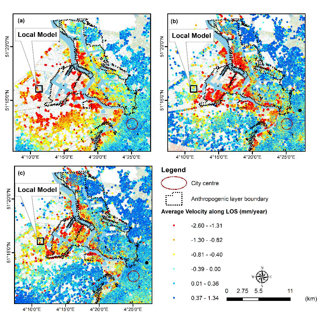 Antwerp ranks seventh with a score of 227. The city’s location in the Scheldt estuary is a major risk factor. Without dikes, parts of Antwerp in the polder areas would be highly vulnerable to flooding during high tides. “Over the last three decades, we’ve observed land subsidence along the embankments of the Scheldt river and some harbour facilities”, says Devleeschouwer. “The ground is sinking slowly because of natural river deposits from the last 12.000 years, which are covered by recent landfills. These layers of sediment and human-made landfills are being compressed, causing the ground to sink by 2.1 to 3.4 mm each year since 1992. However, the eastern bank, where the city center is located, remains stable. We will have to keep monitoring the underground, as climate changes and sea-level rise might also influence the natural phenomena and human-induced activities inside this area."