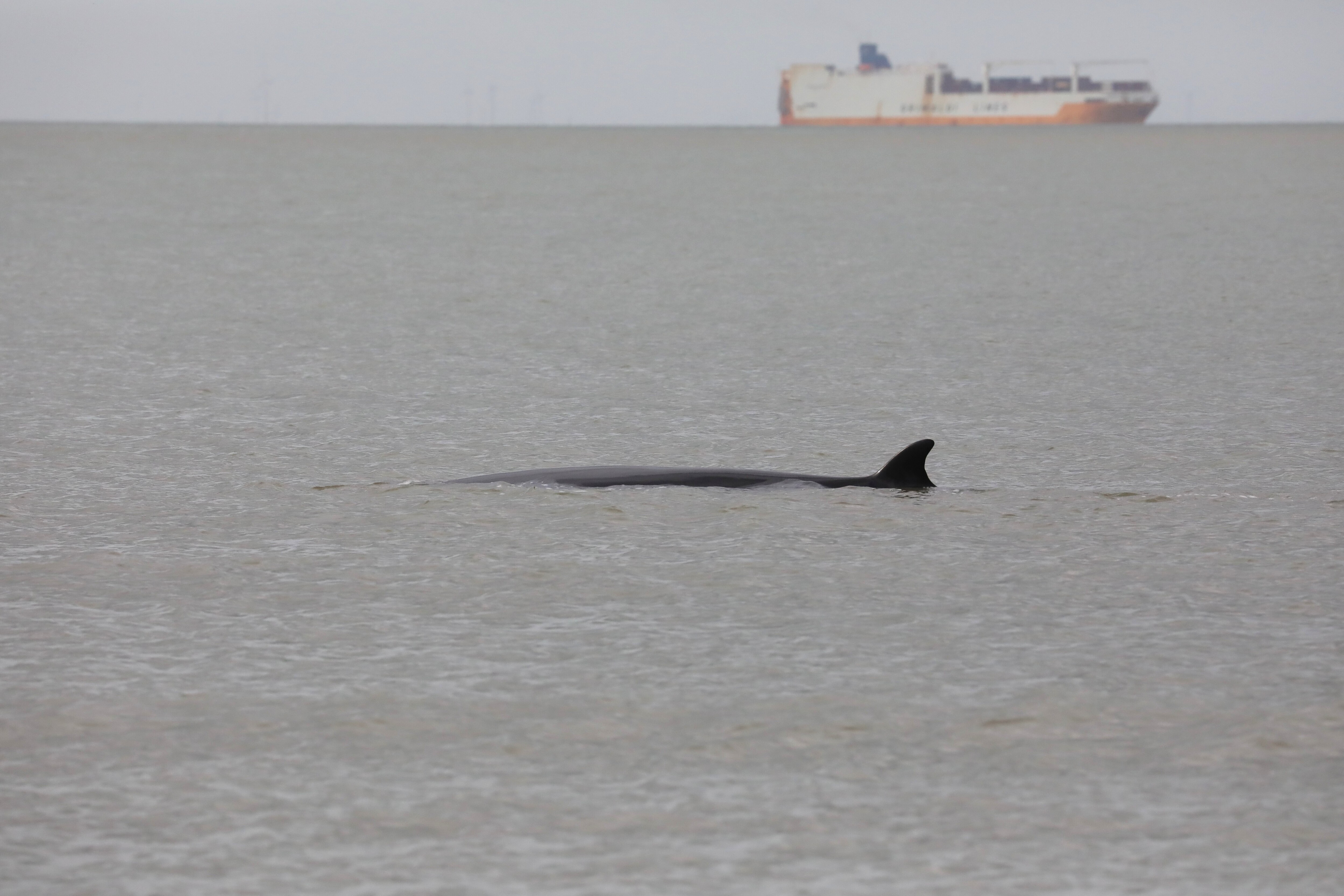 Minke whale washed ashore in Heist guided back to sea