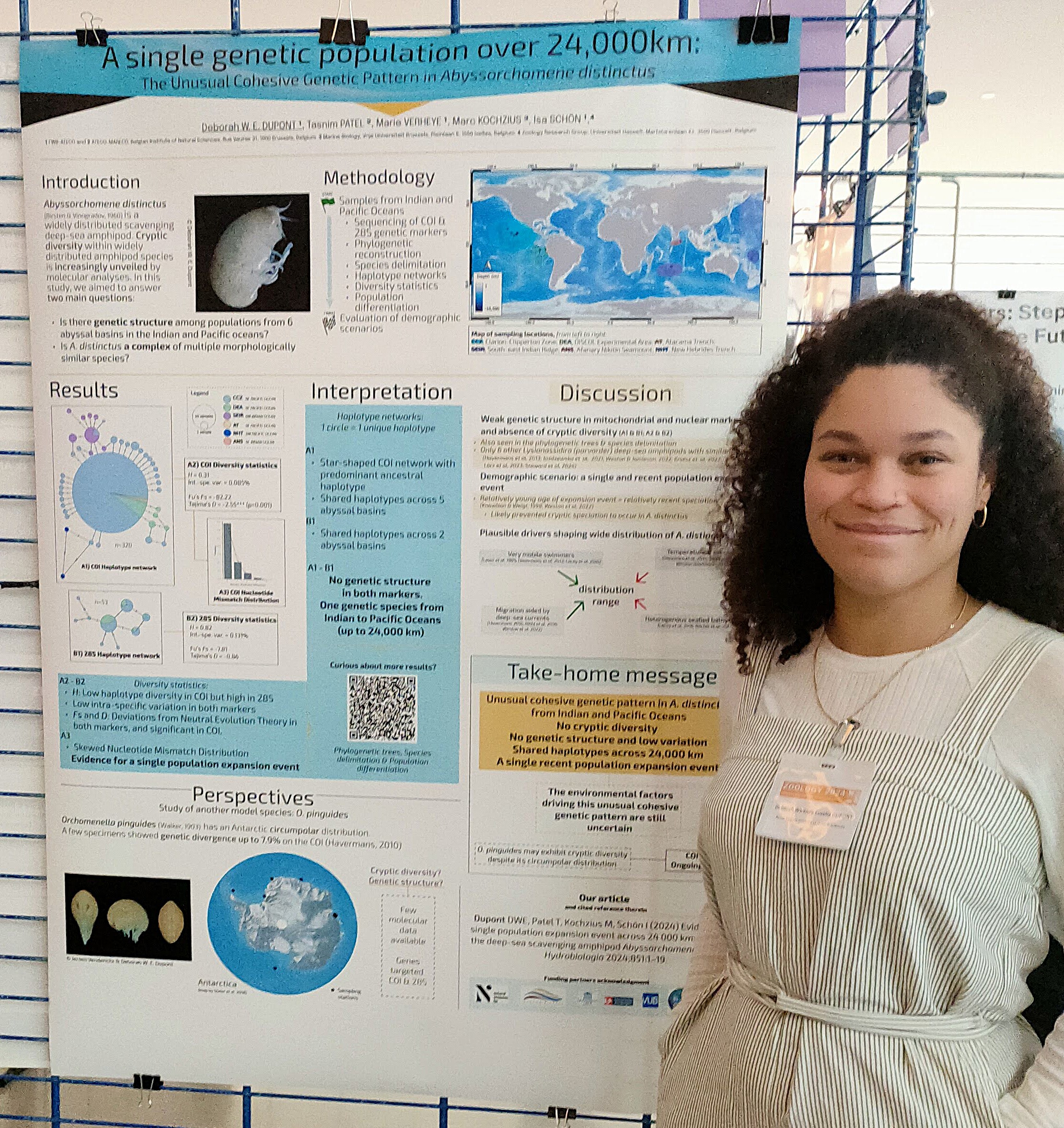 Deborah published her 1st first-authorship co-authored research paper in 2024, titled "Evidence for a single population expansion event across 24,000 km: the case of the deep-sea scavenging amphipod Abyssorchomene distinctus," in the journal Hydrobiologia (2024). This publication highlights her ongoing contributions to advancing our understanding of marine biodiversity and evolution in extreme ecosystems.