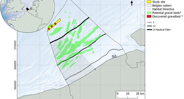Au cours des quatre dernières années, des recherches approfondies sur la répartition des bancs de gravier dans les eaux belges les plus éloignées, au-delà du Hinderbanken, ont également conduit à la découverte d'un habitat naturel de bancs de gravier dans des conditions écologiques apparemment favorables, juste en dessous de la principale voie de navigation. Grâce à des instruments océanographiques de pointe à bord de l'ancien navire de recherche belge RV A962 Belgica, 5 km² de ce "point chaud de la biodiversité sous-marine" ont été observés et cartographiés avec un niveau de détail sans précédent.