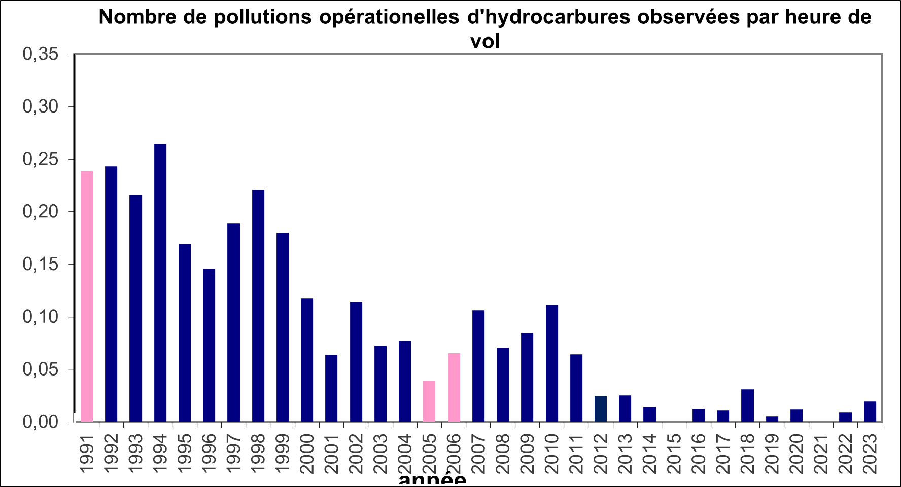 En revanche, quatre déversements opérationnels d'hydrocarbures ont été recensés (plus de détails ici). Bien qu'il s'agisse du nombre le plus important des 5 dernières années, la tendance à la baisse des 30 dernières années reste intacte (voir graphique).