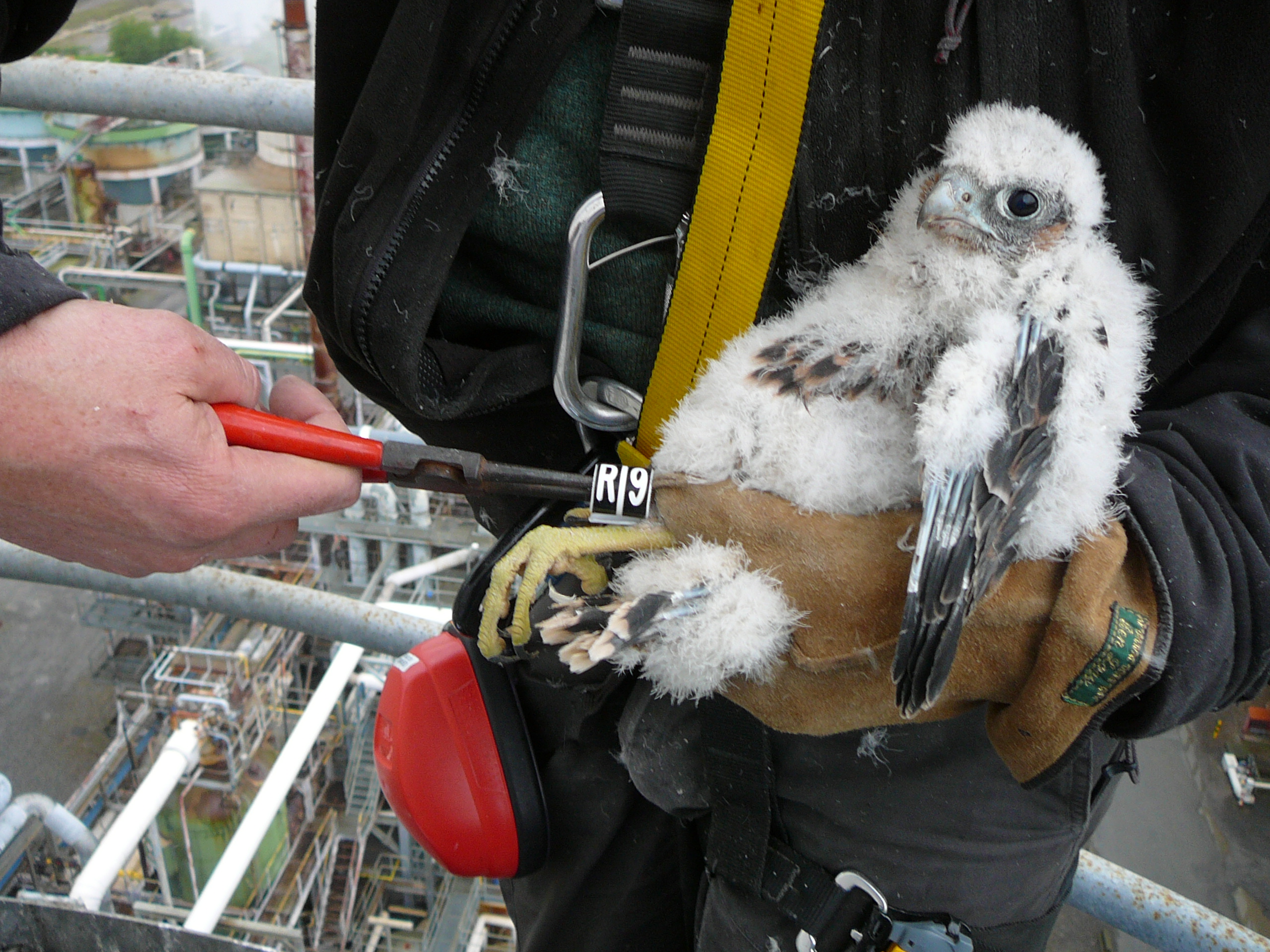 Slechtvalken worden specifiek in de gaten gehouden door jonge valken te ringen.