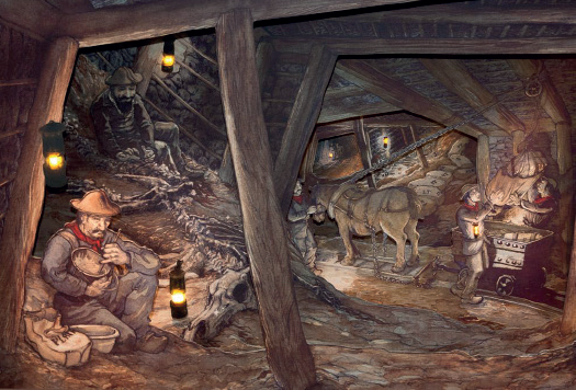 Het team vindt snel een routine. Elke ochtend rond 5.30 uur afdalen in de mijn en zeven uur later weer naar boven. De namiddag is rustiger. Het team verzamelt rond 15.00 uur op de terril om de blokken klei te onderzoeken die ze uit de galerij op 322 meter diepte hebben omhooggehaald. Het gros van de ‘kleine’ fossielen - vissen, planten, insecten, schildpadden en kleine amfibieën - vindt het tijdens die dagelijkse inspecties op de terril. De werkomstandigheden in de galerij zijn erg penibel en door de zwakke verlichting kun je de kleine fossielen niet goed zien in hun omhulsel van klei.