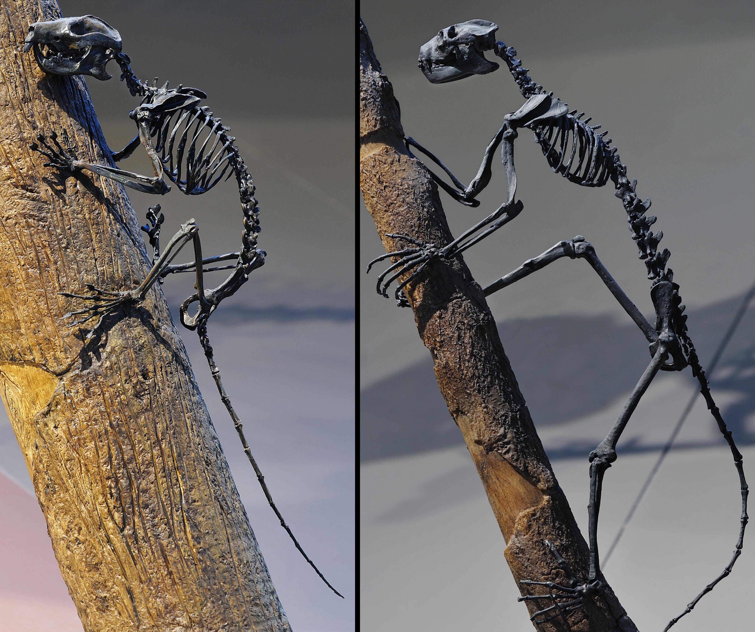 De primaat Notharctus (rechts): ogen naar voren gericht, opponeerbare duim en teen, en nagels. (Foto: Thierry Smith, KBIN)