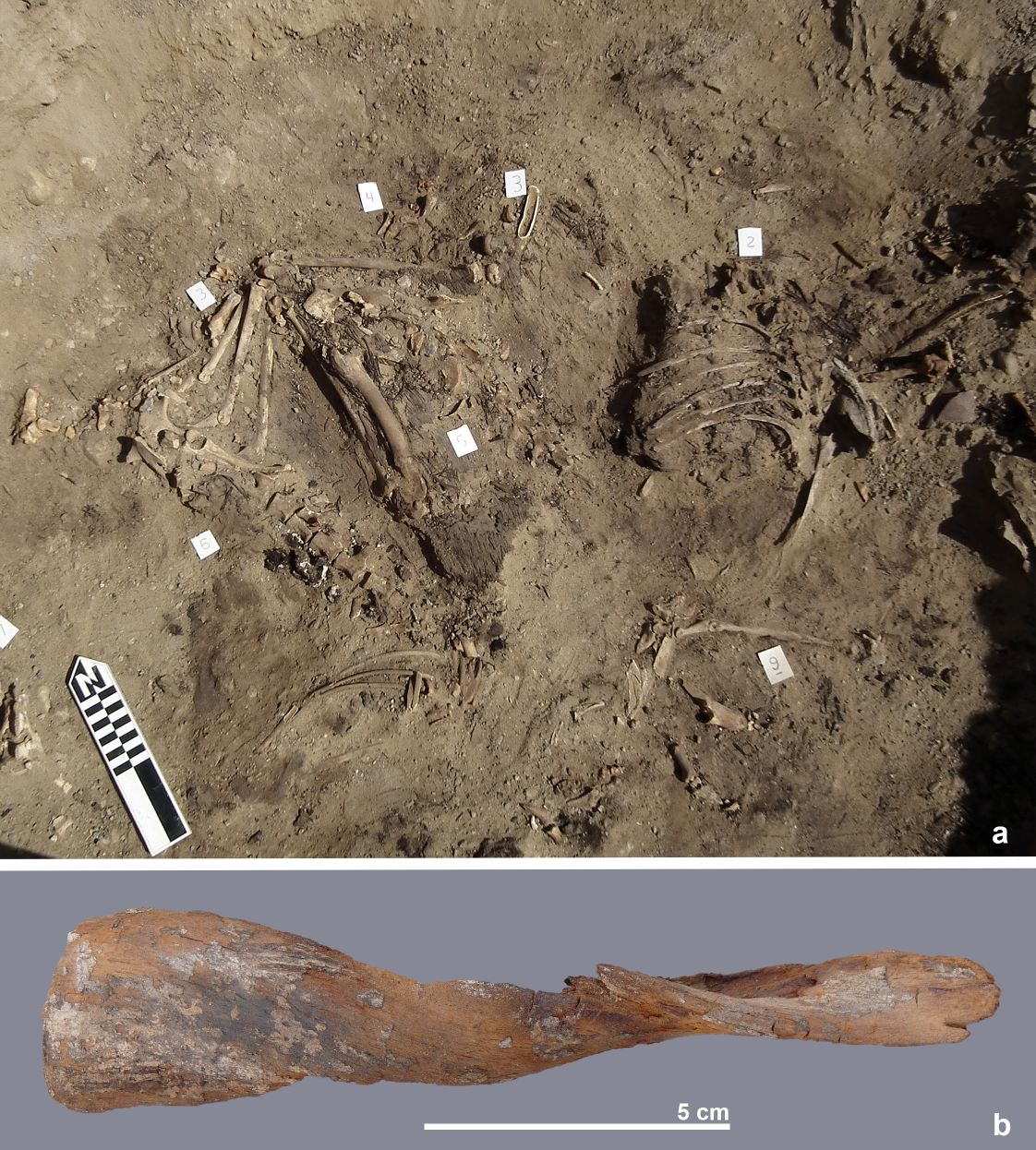 ‘Inkepingen in de hoorns suggereren dat oude Egyptenaren touw gebruikten om ze samen te binden’, zegt archeozoöloog Bea De Cupere (Instituut voor Natuurwetenschappen), die aan zes opgravingsmissies deelnam in Hierakonpolis. ‘Gaten in de schedelbeenderen wijzen erop dat de veehouders de schedel van het jonge dier ook nog eens braken om het rechtopgroeien te bevorderen. Het is een praktijk die bepaalde Afrikaanse herdergemeenschappen nog toepassen bij runderen.’