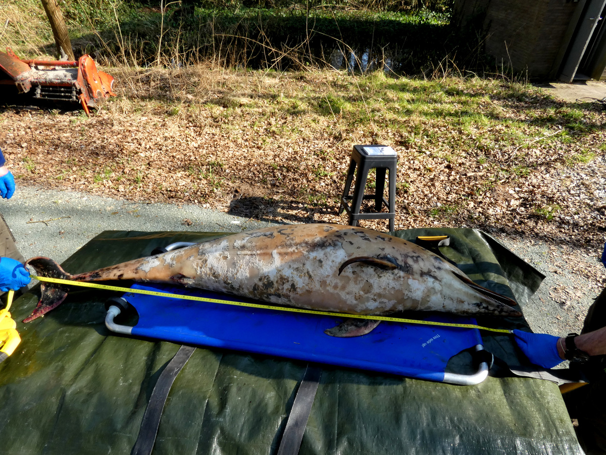 Bij de analyse door medewerkers van het ANB en de Zoogdierenwerkgroep van Natuurpunt Antwerpen Noord & Kempen, in overleg met het Instituut voor Natuur-wetenschappen, werd vastgesteld dat het dier een jong vrouwtje was met een lengte van 166 cm en een geschat gewicht van 70 à 80 kg. De huid was grotendeels verdwenen, waardoor het moeilijk was om te bepalen om welke soort het ging. Het gebit past het best bij een gewone dolfijn (Delphinus delphis), maar een gestreepte dolfijn (Stenella coeruleoalba) kon niet worden uitgesloten.
