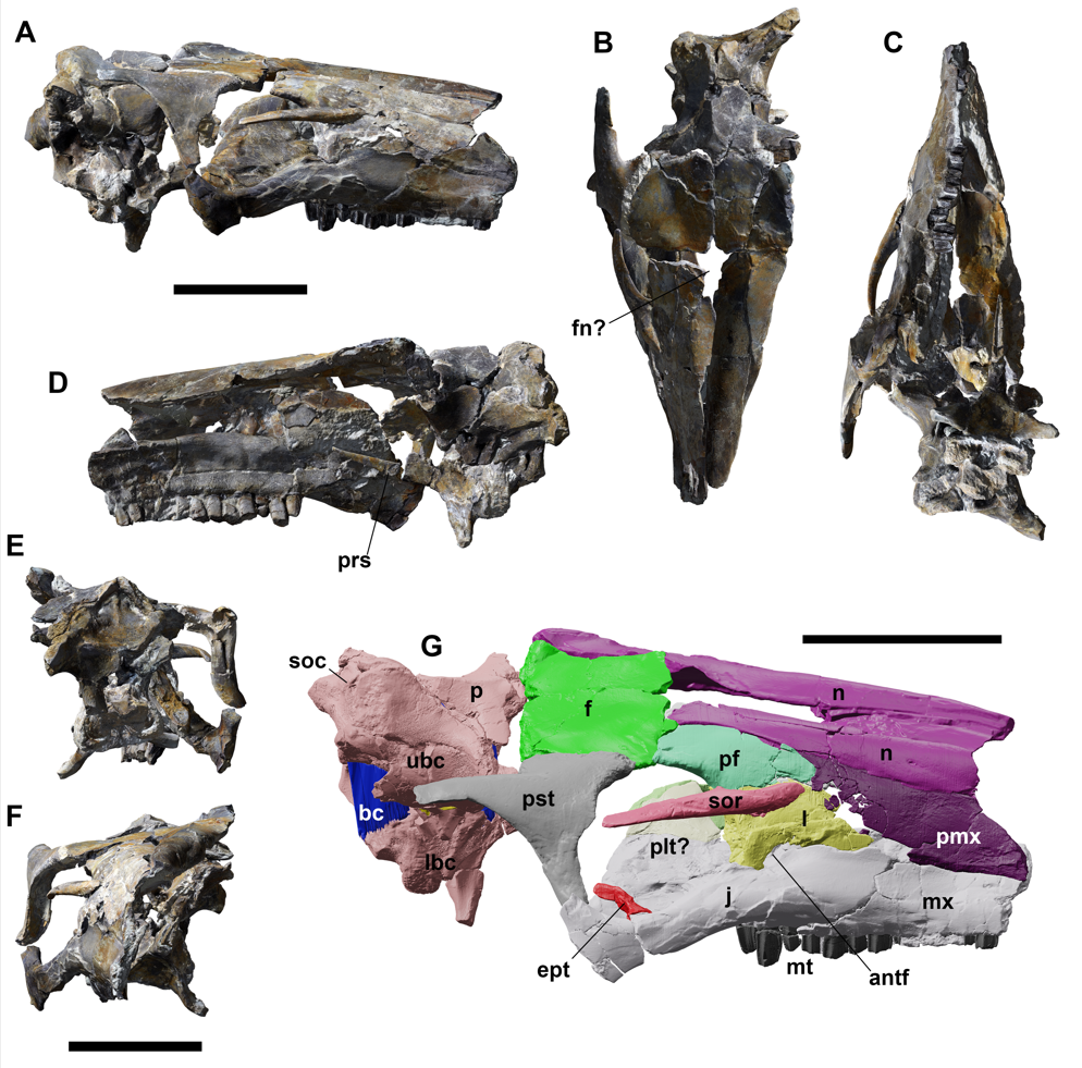 Het fossiel bestaat uit de rechterkant van de schedel, delen van het schedeldak en een bijna complete hersenpan. De onderzoekers konden op basis daarvan anatomische kenmerken vaststellen die nog nooit eerder bij andere soorten iguanodons zijn gezien. “De bovenkaak en het jukbeen zijn volledig met elkaar vergroeid. Dat hebben we nog bij geen enkele andere iguanodonsoort gezien,” aldus Bertozzo. “Het is geen toeval of afwijking. Dit is een echt nieuw kenmerk – en dus een nieuwe soort.”