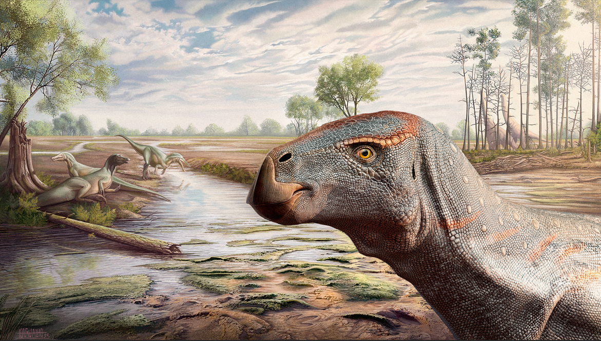 In Portugal is een nieuwe soort plantenetende dinosaurus ontdekt: Cariocecus bocagei, een iguanodont uit het vroege Krijt, met een uitzonderlijk goed bewaarde schedel. “We konden zelfs de afdruk van de hersenhelften en het gehoorsysteem zien,” zegt Filippo Bertozzo, paleontoloog aan het Instituut voor Natuurwetenschappen en eerste auteur van de studie.